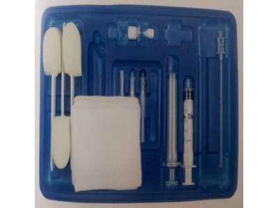 【结构及组成】:本品一次性注射器、玻璃注射器、纱布块、药液过滤器、一次性刷子、国标手套、针头、神经阻滞穿刺针、包布、洞巾、治疗巾、敷料贴、托盘组成。